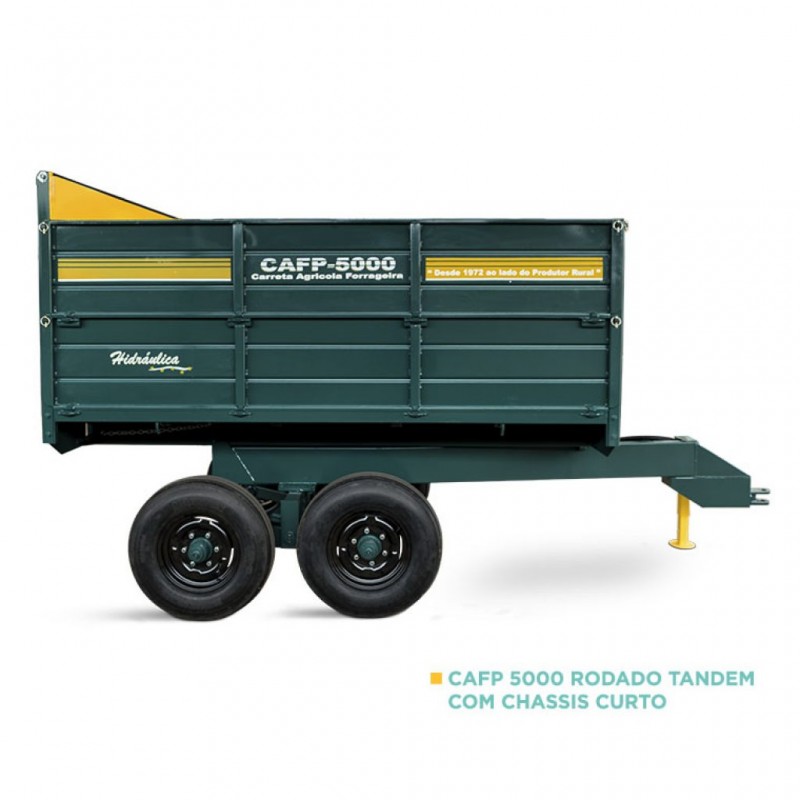 Carreta agrícola marca Pinheiro modelo 5ton rodado tandem, chassi em ferro, carroceira metalica, basculante com acionamento por pistão hidraulio